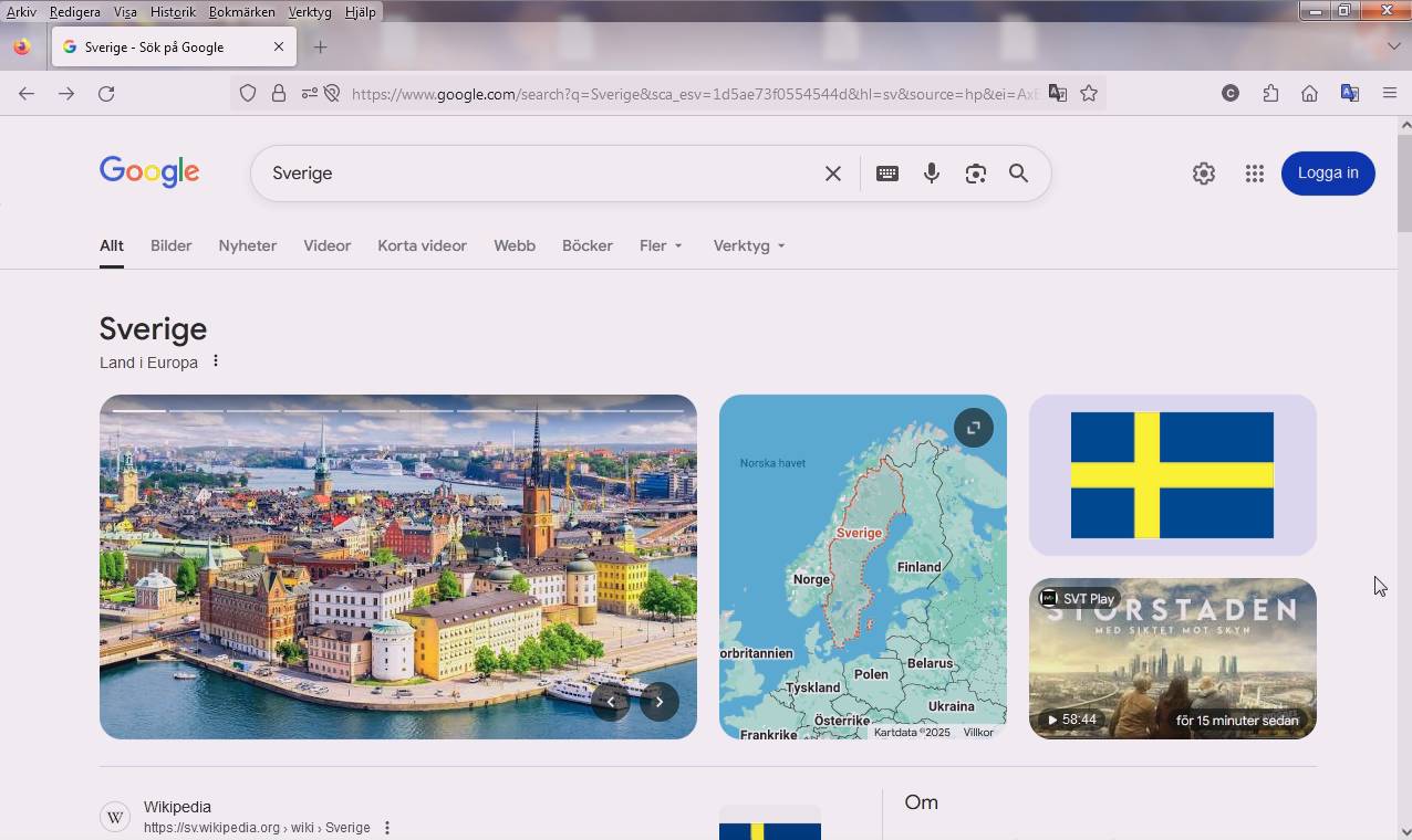 Sökning på Sverige (Valt saker att göra i Sverige)
