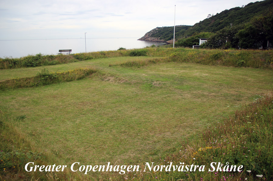 Stillhet, småbåtshamn, utsikt mot Kullaberg och några bänkar för solnedgång.